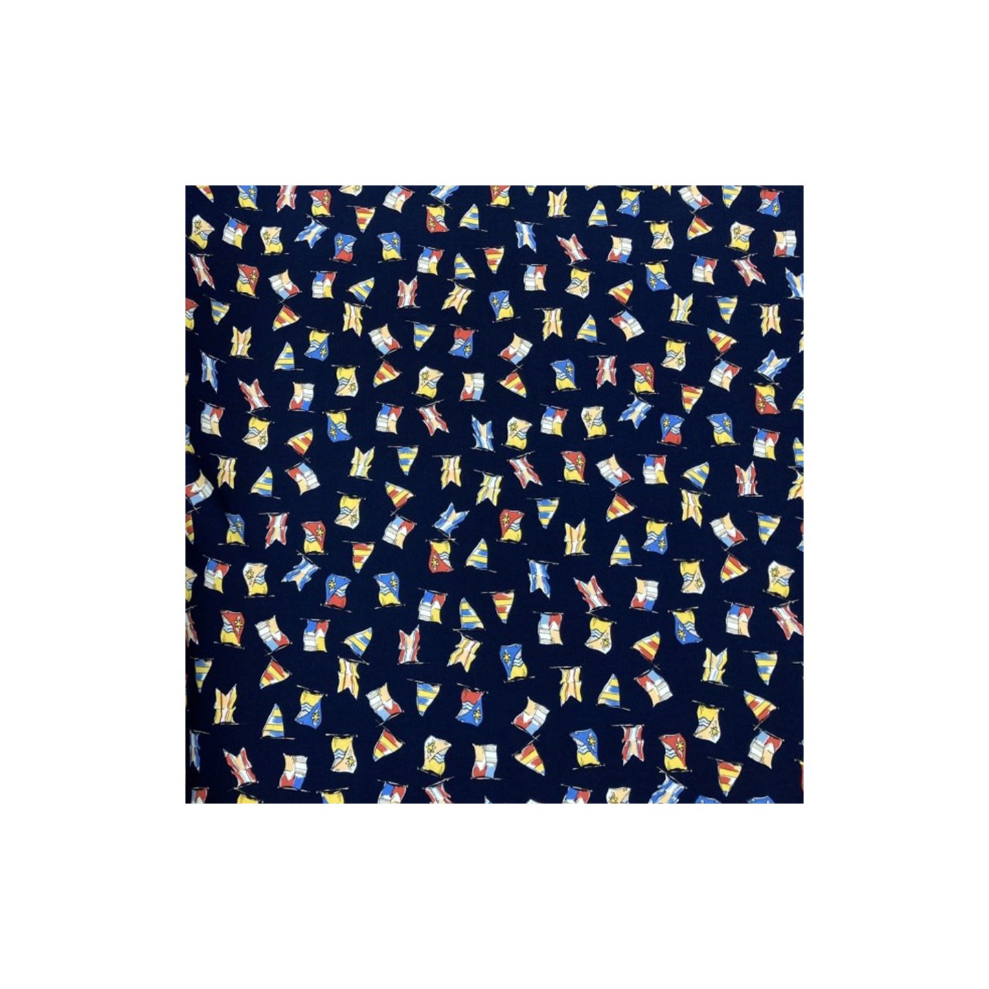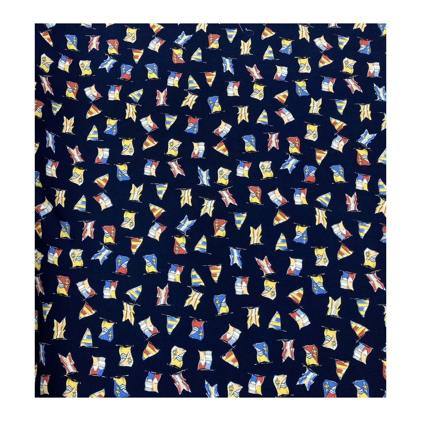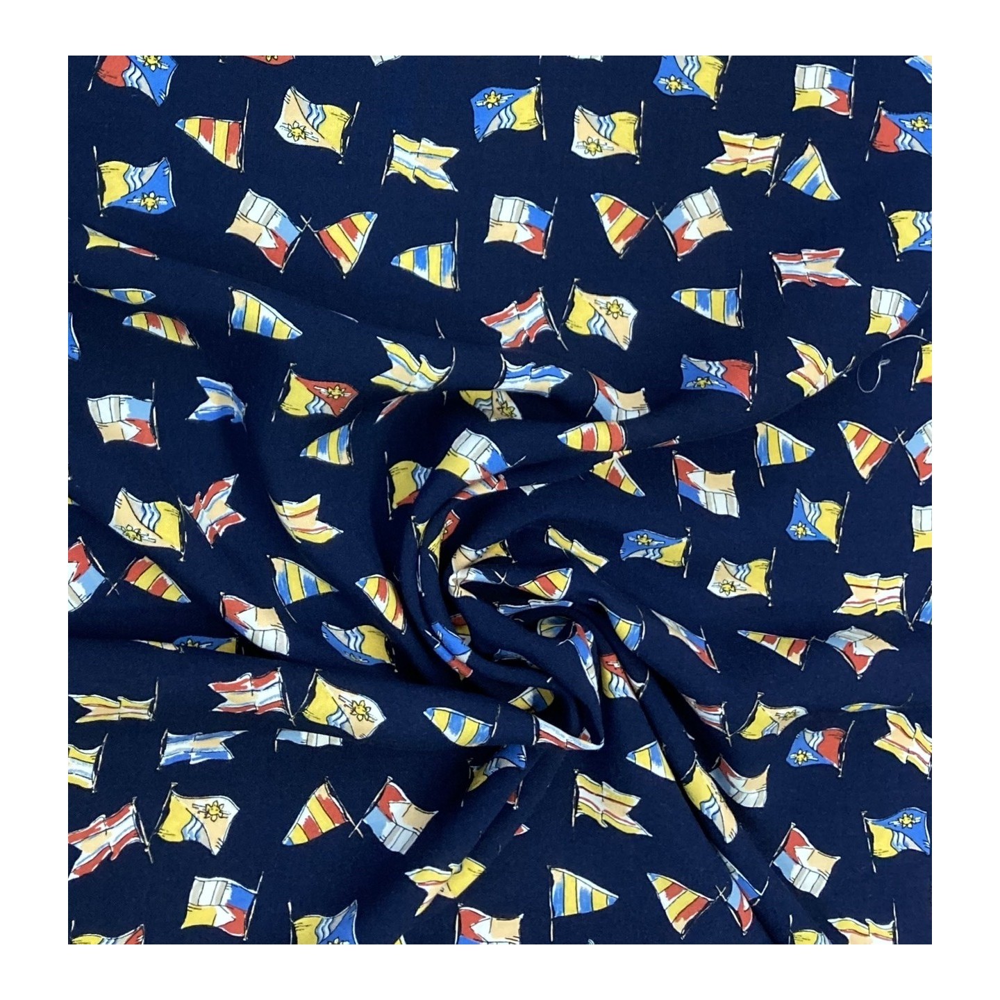 Ce tissu Viscose imprimé drapeau , issue d'une fibre naturelle , aura le rendu parfait pour la confection de vêtements (robes,jupes,chemisers… ) ainsi que pour la décoration de chambre d'enfant .