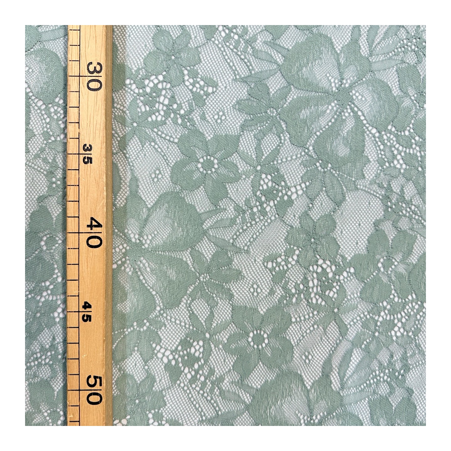 Apportez fraîcheur et légèreté à vos créations avec cette dentelle turquoise aux motifs floraux.