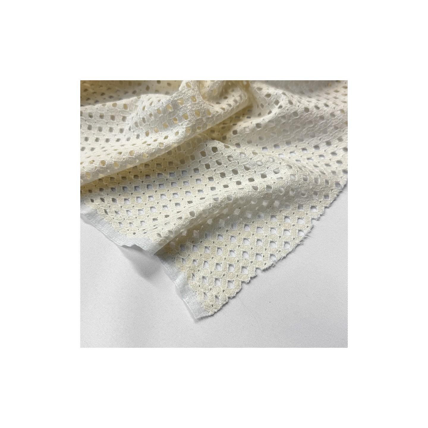 Une nuance écru authentique et chaleureuse Contrairement au blanc optique parfois trop froid, le coloris écru apporte une douceur naturelle et un aspect vintage authentique à vos ouvrages. C’est la teinte par excellence pour les projets de mariage bohème-chic, les cérémonies ou pour créer des vêtements qui évoquent le charme des pièces d’antan. L’écru capte la lumière avec subtilité, mettant en relief chaque détail du tissage et chaque volute du motif floral.