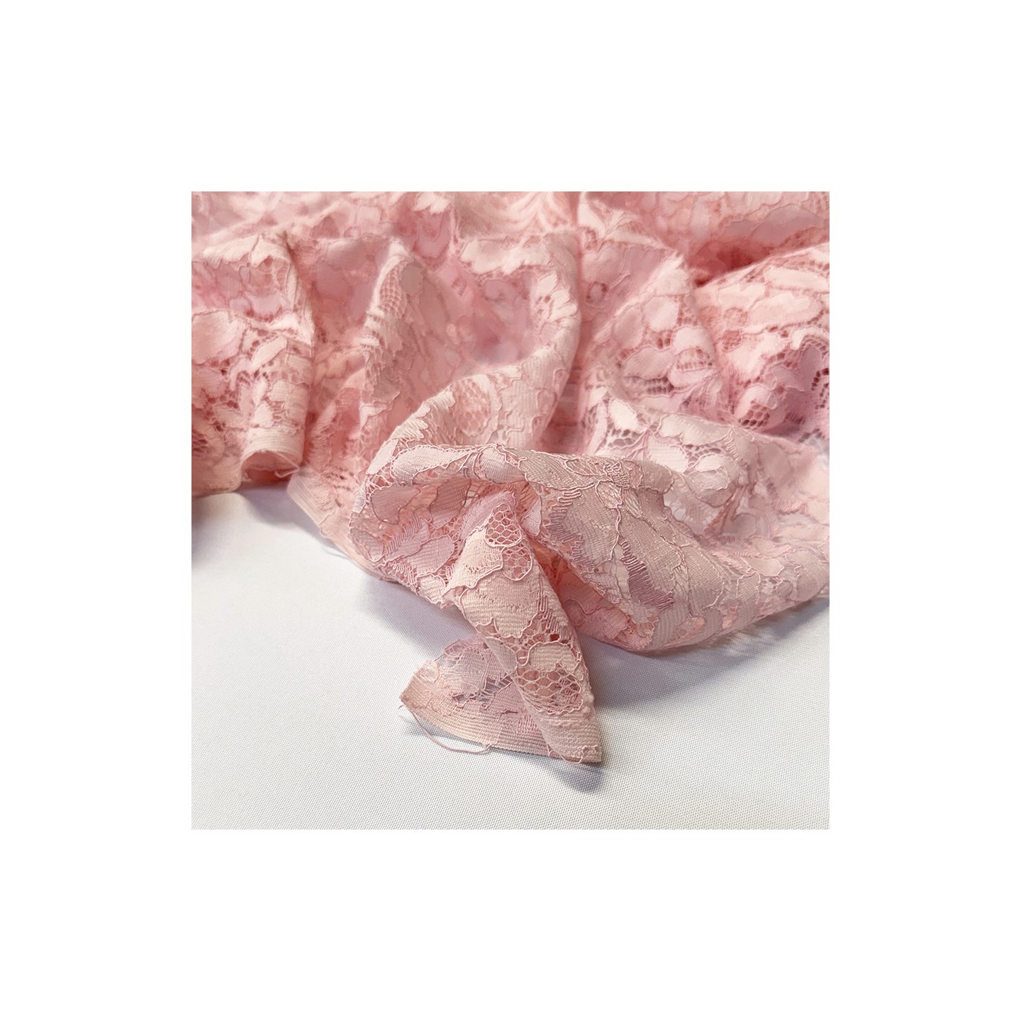 Une nuance fraîche et lumineuse Le coloris rose corail de cette dentelle est une véritable ode à la féminité. Plus chaud qu'un rose classique, il flatte toutes les carnations et apporte une luminosité immédiate à vos projets de couture. C'est la teinte idéale pour des créations printanières ou estivales, évoquant la douceur d'un jardin en fleurs. Sa couleur vibrante permet de créer des pièces fortes qui captent le regard tout en restant d'un raffinement extrême.