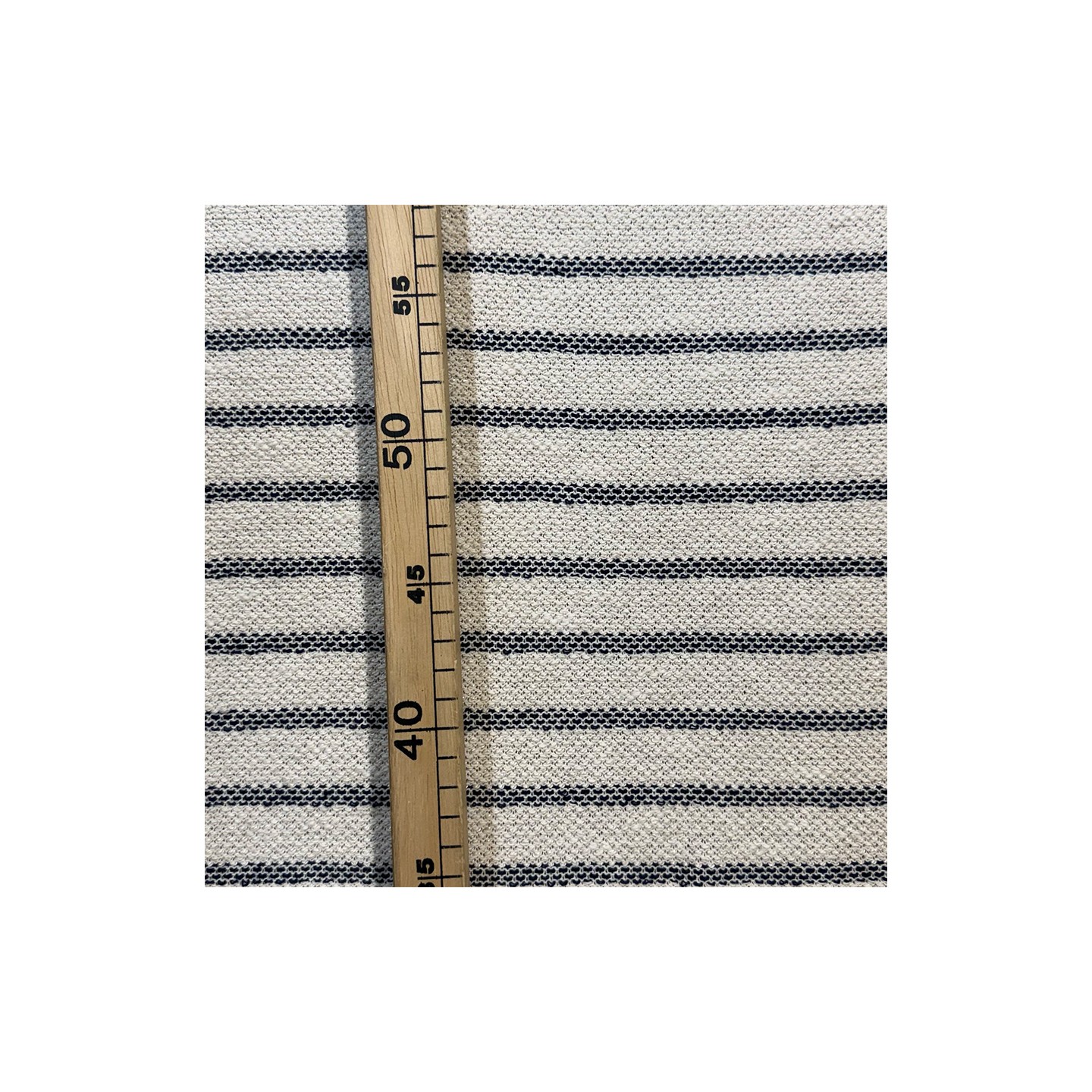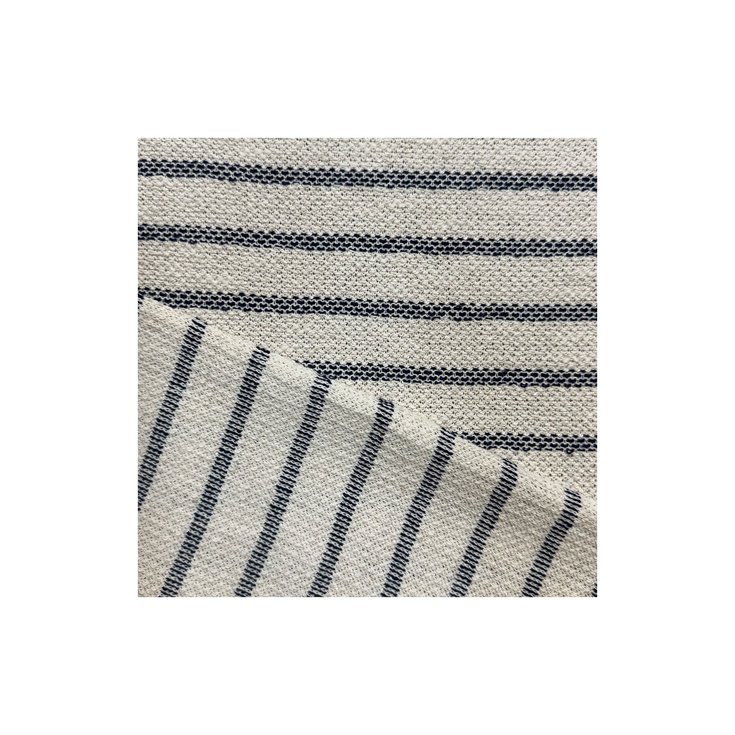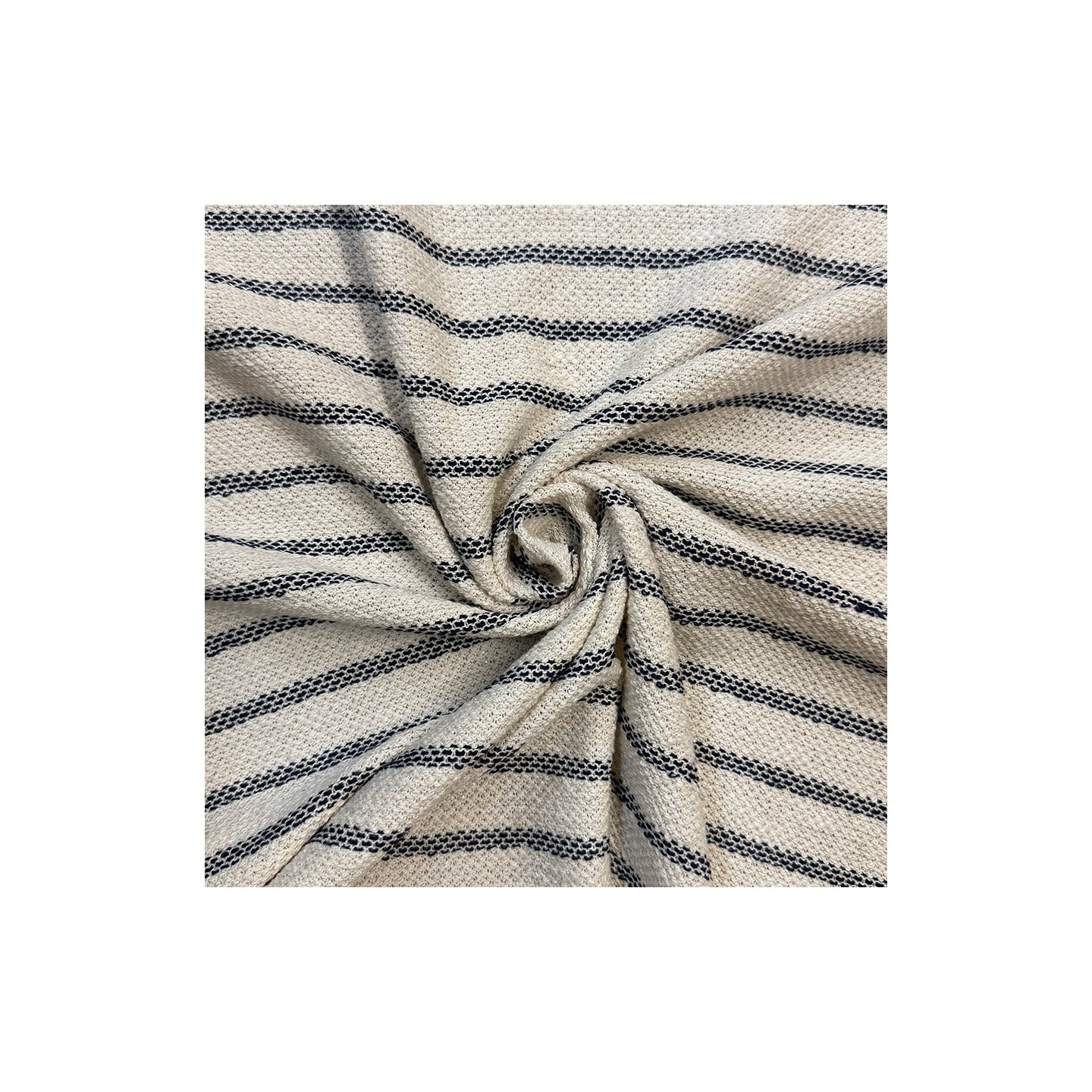 Découvrez l'équilibre parfait entre rusticité et raffinement avec cette maille tricotée à rayures. Ce tissu d’exception se distingue par une composition riche associant le coton, le modal et le lin, offrant un textile à la fois technique, confortable et esthétiquement remarquable.