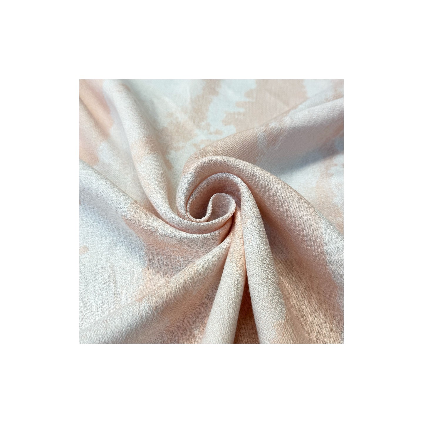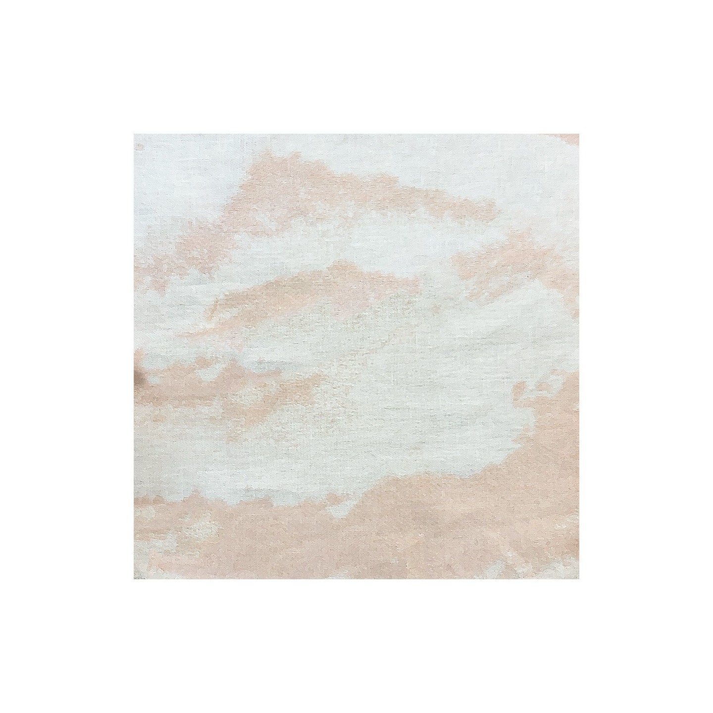 Le motif de ce jacquard présente un dégradé abstrait d'une grande délicatesse. Les motifs ne sont pas imprimés, mais tissés directement dans la fibre, alternant des fils d'un rose poudré tendre et des fils crème lumineux. Cette technique crée un effet d'aquarelle tissée, où les contours se fondent en douceur, évoquant des nuages floraux éthérés.
